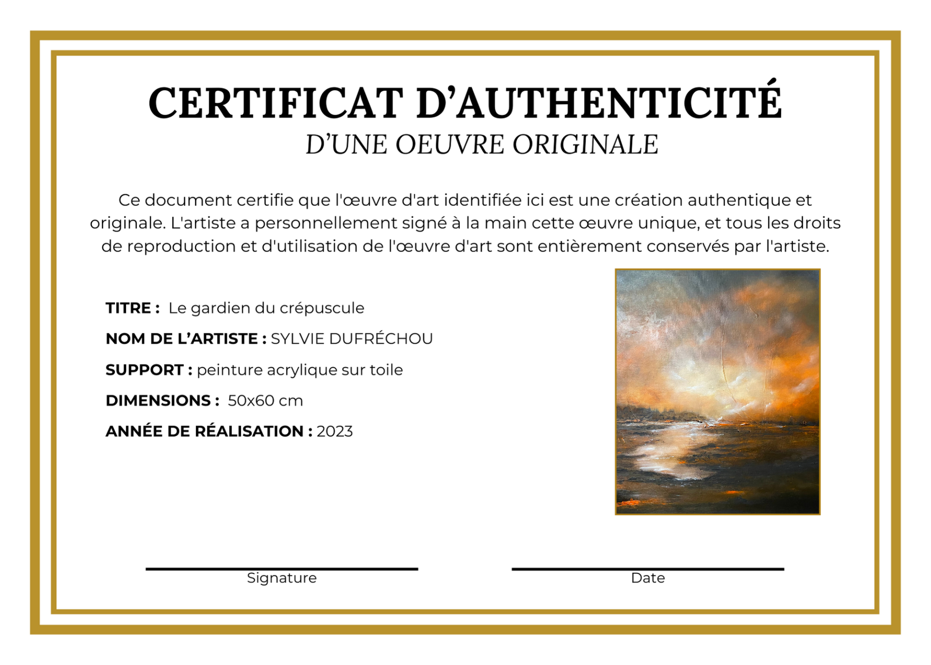 Laissez-vous séduire par la force évocatrice de Le Gardien du Crépuscule et offrez à votre espace une œuvre d’exception.