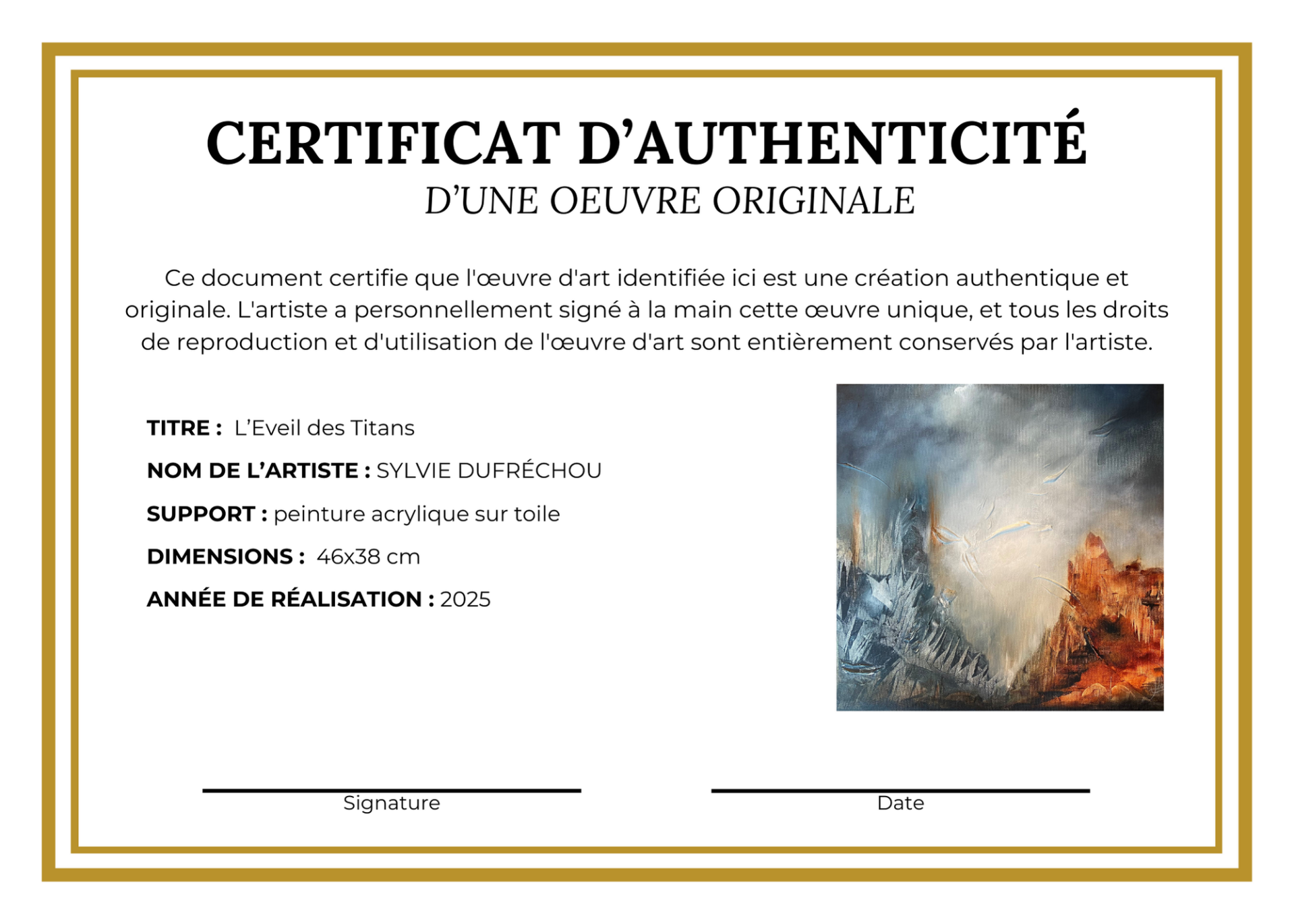 Parfaite pour une décoration moderne et immersive, L’Éveil des Titans apportera à votre intérieur une intensité dramatique et une profondeur envoûtante.